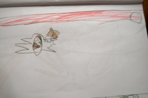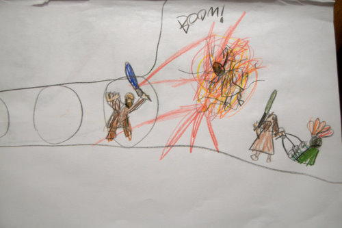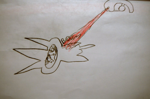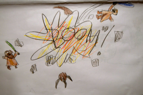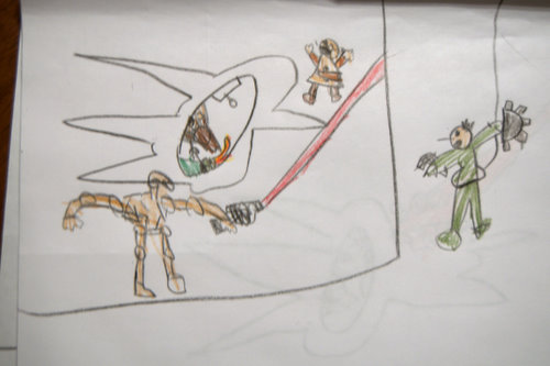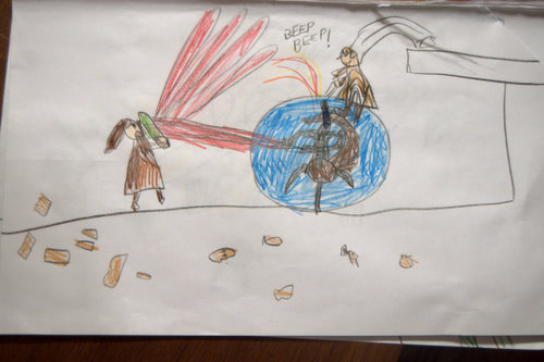 But there was a really strong Droidex with a force field around it. But it's force field only deflects lasers so Obi-wan Kenobi jumped from up above the droidex and let go of his light sabre which wasn’t on, and it hit the Droidex and then turned on and cut him and…